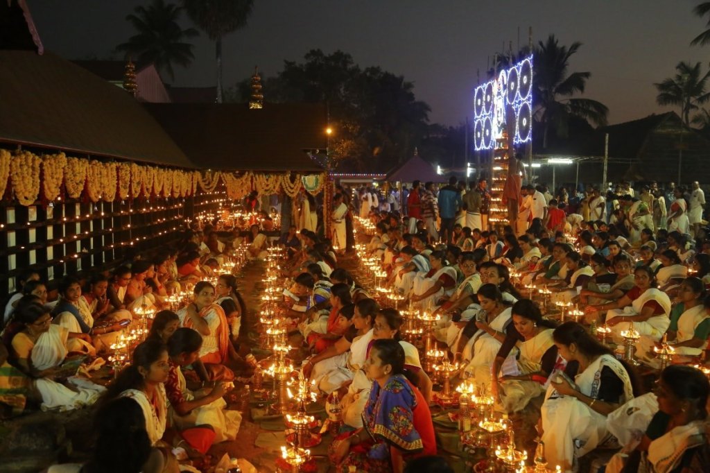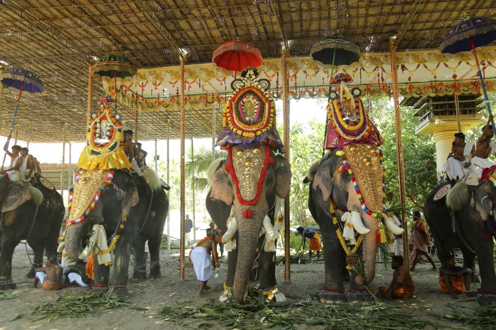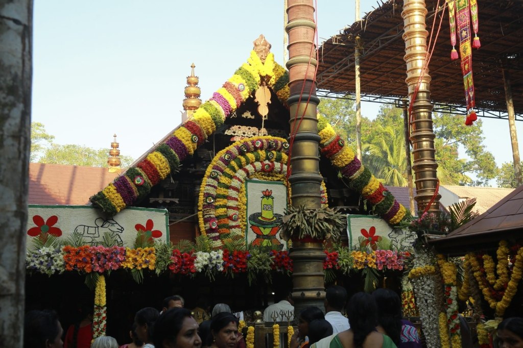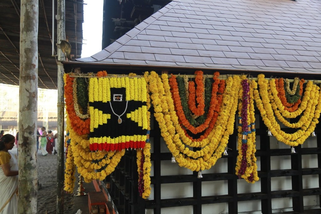 The idol in the temple is taken out on a procession around the countryside on top of elephant. The procession includes Various art forms like Velakali, Mayura nirtham, Vaypaatu, Thalapoli and many more. The major highlight is that when the procession visits homes around the temple, people of all religions will usually offer rice, coconuts, and other offerings.